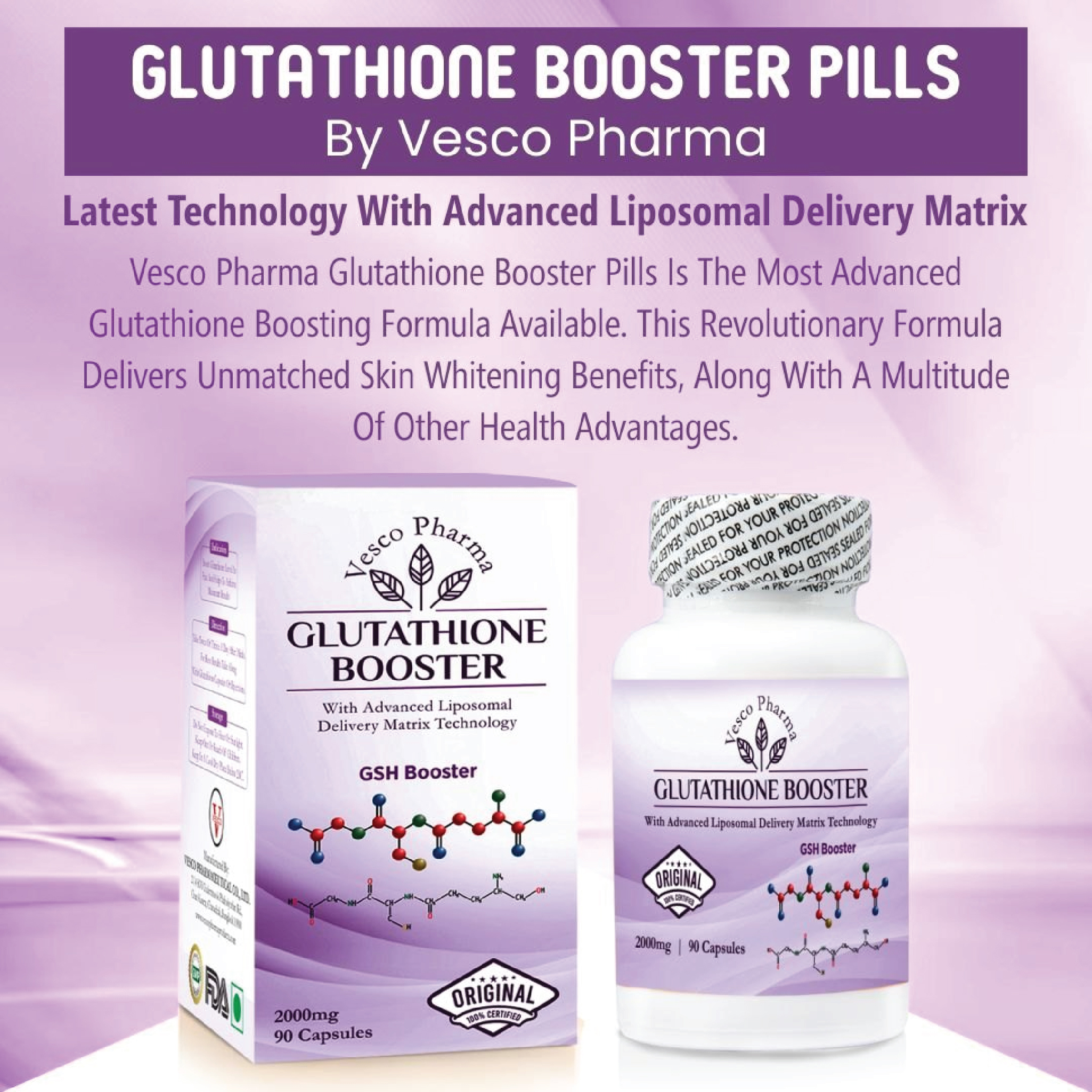 Vesco Pharma Glutathione Booster Capsules are perfect for anyone seeking a safe, potent, and reliable solution for skin whitening, anti-aging, and antioxidant protection.