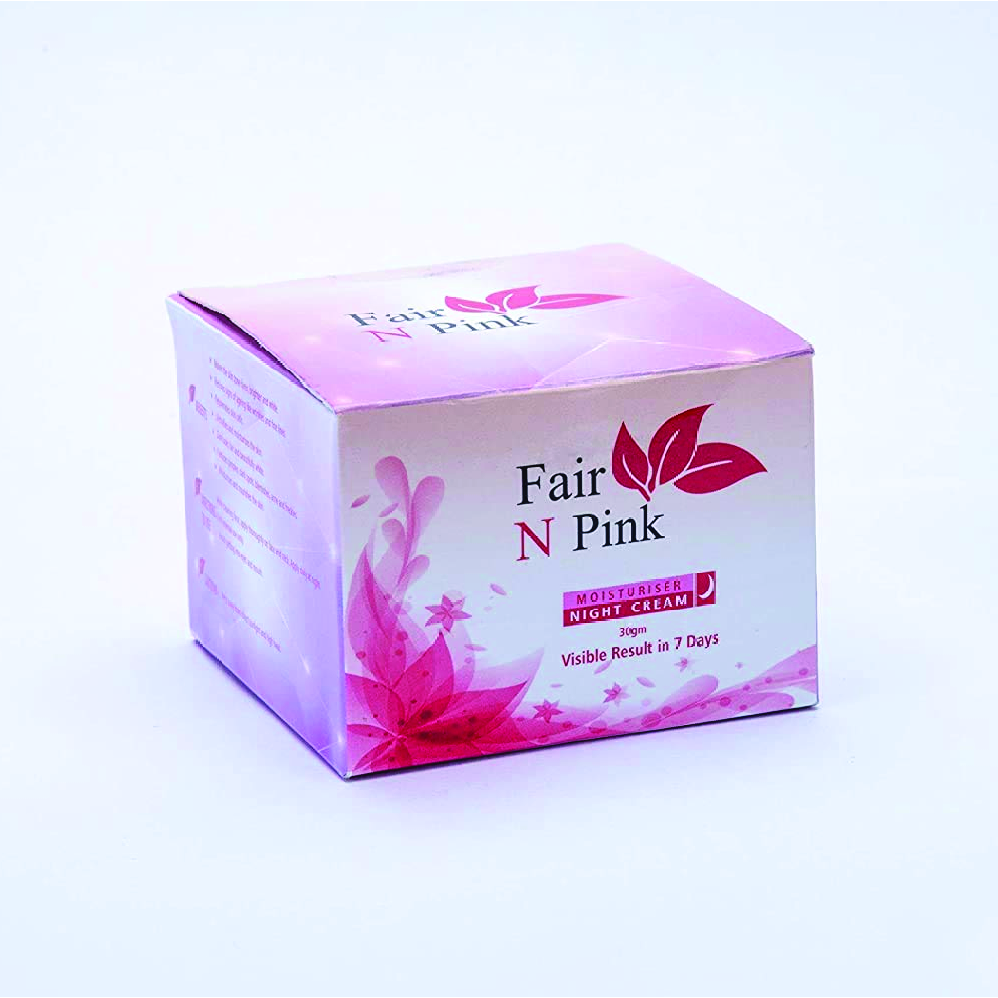 • Treatment: The Fair N Pink Glutathione Moisturiser Night Cream should be used in a series of 30 Grams for optimal results. Apply daily for good results..