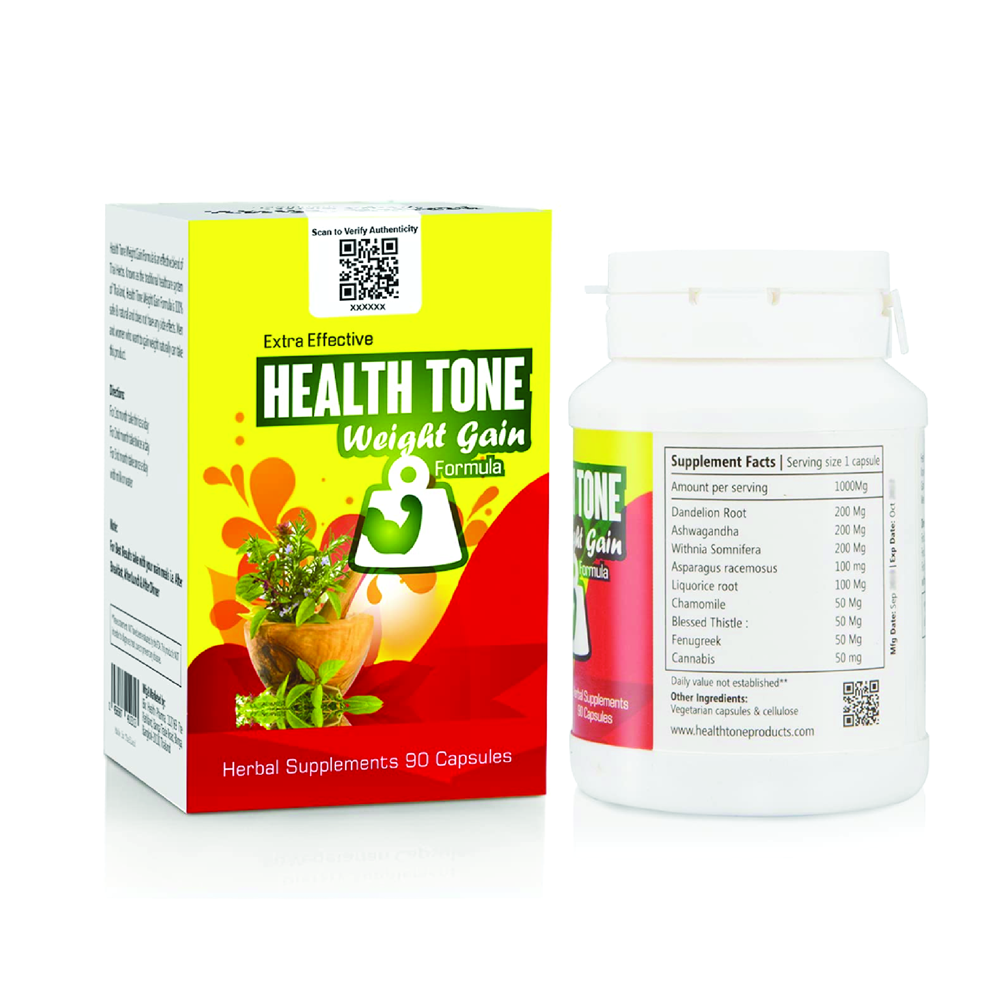 • Treatment: The Extra Effective Health Tone Weight Gain Formula 1000mg Capsule which contains 90 Capsules in a bottle. Take 1 Capsule Twice Daily, one in the morning and one at night after meals apart to allow your body to absorb the full benefits.