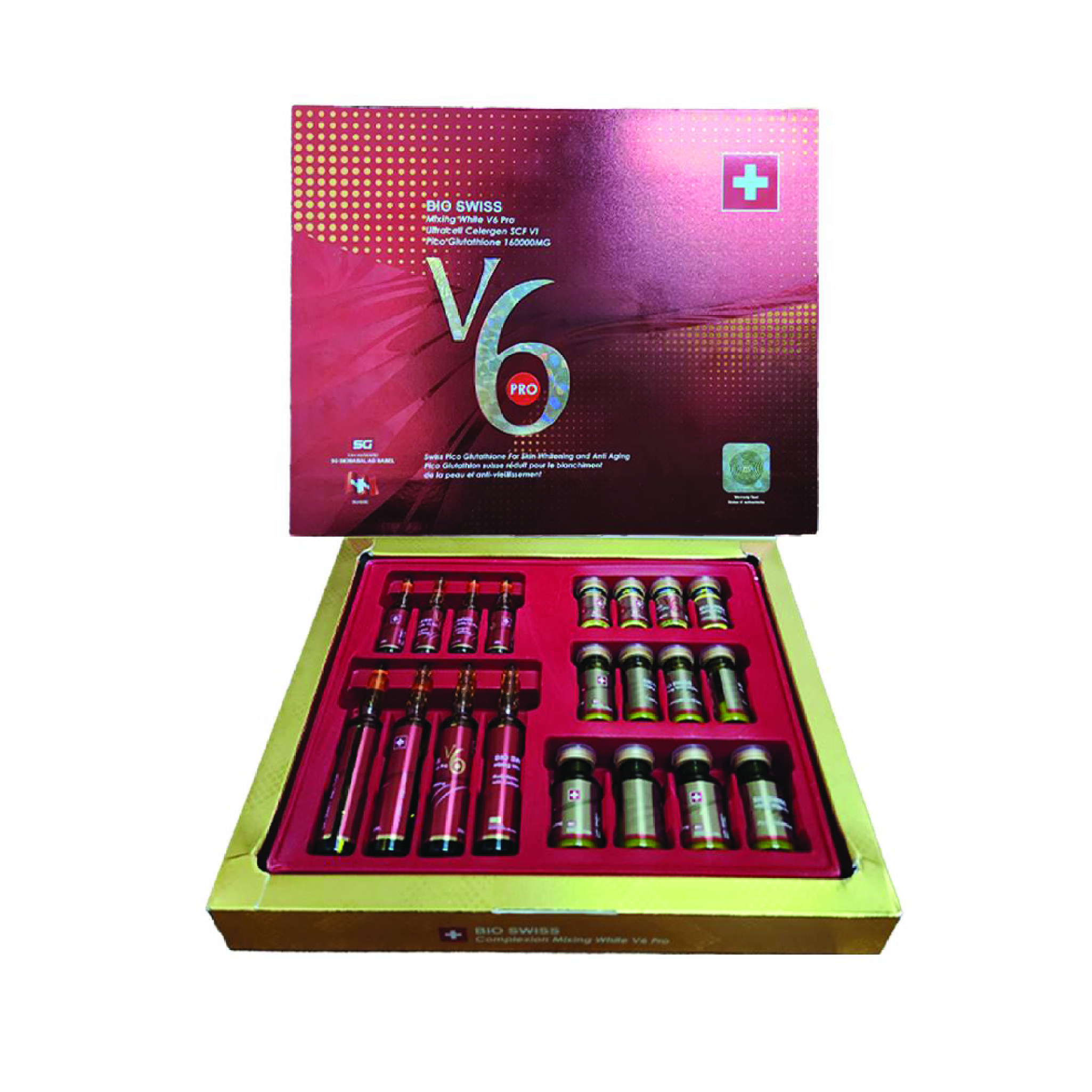 The Bio Swiss Mixing White V6 Pro Ultracell Injection not only targets pigmentation, dark spots, and dullness but also improves elasticity, hydration, and overall tone. It is the ultimate solution for those seeking radiant whitening, anti-aging repair, and cell renewal perfection.