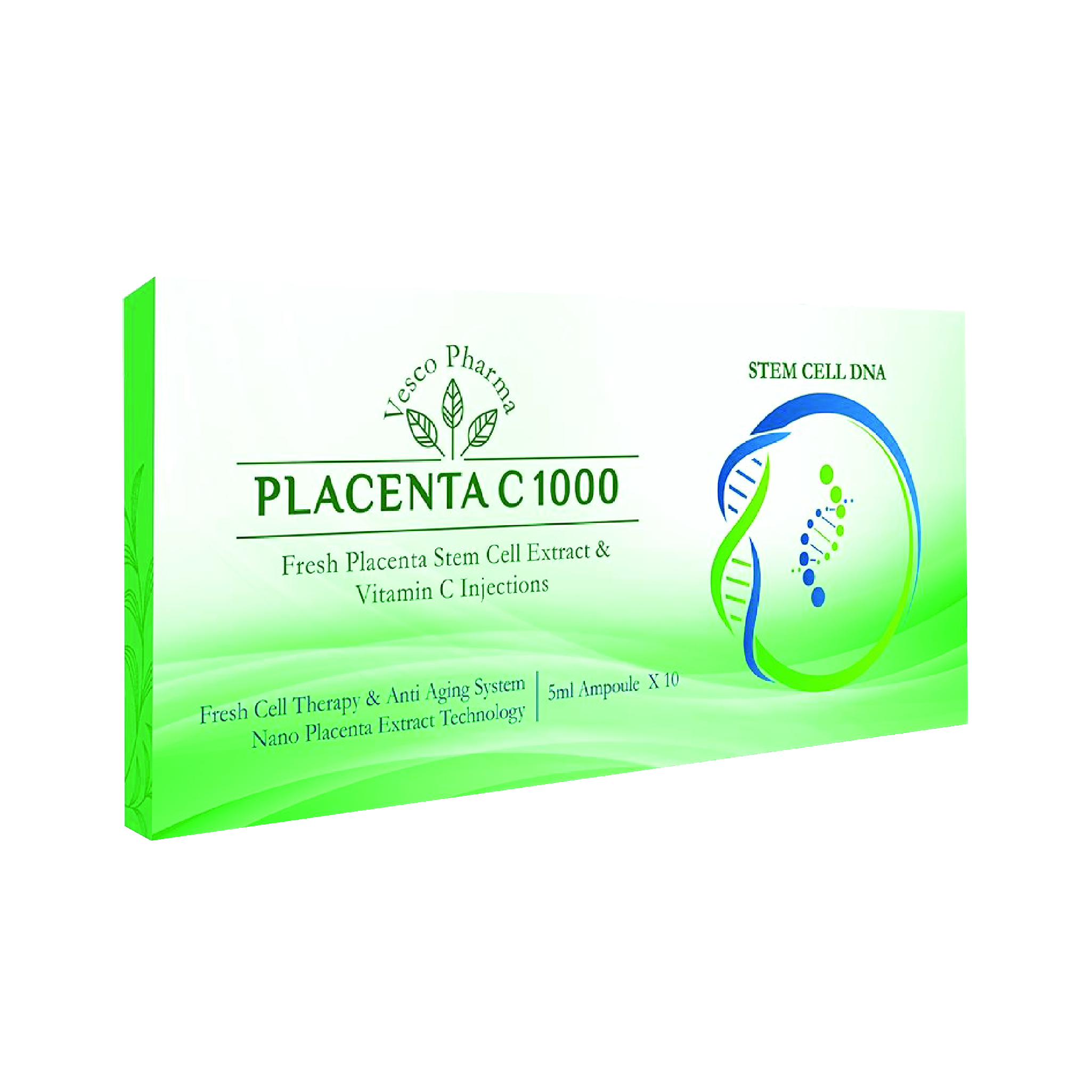 Conclusion: Vesco Pharma Placenta C 1000mg Fresh Placenta Stem Cell Extract & Vitamin C Injection [10 Sessions] is a powerful rejuvenating solution crafted to brighten, firm, hydrate, and revitalize the skin. With the synergy of Placenta Stem Cell Extract and Vitamin C, this premium formulation supports youthful glow, improved texture, and enhanced skin vitality—making it an excellent choice for those seeking advanced skin renewal and radiance.