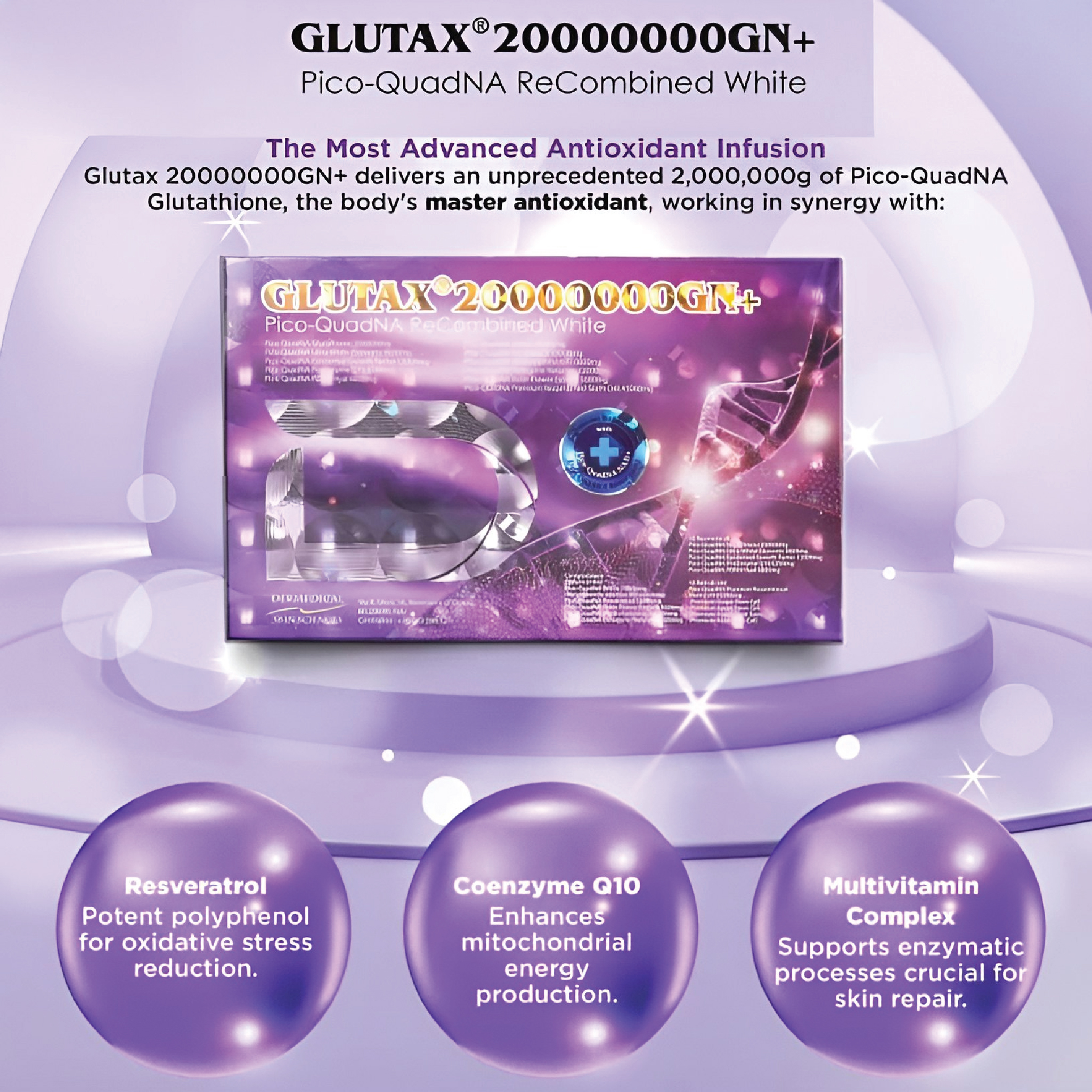 Model: Glutax 20000000GN+ Pico QuadNA ReCombined White Glutathione Injection
