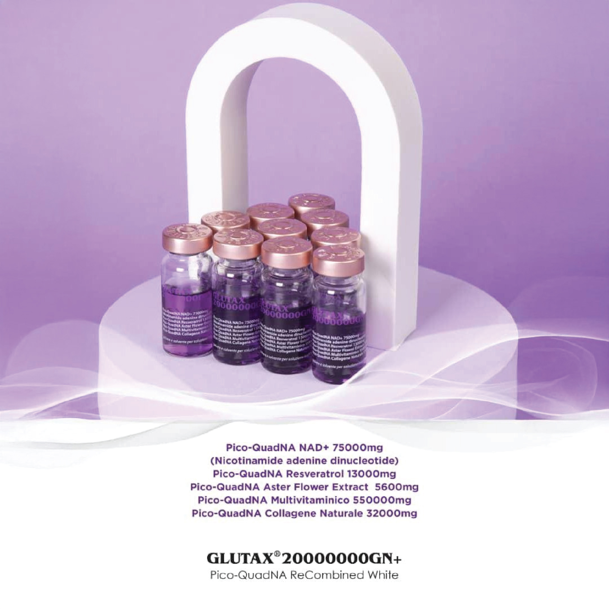 Glutax 20000000GN+ Pico QuadNA ReCombined White Glutathione Injection [10 Sessions]