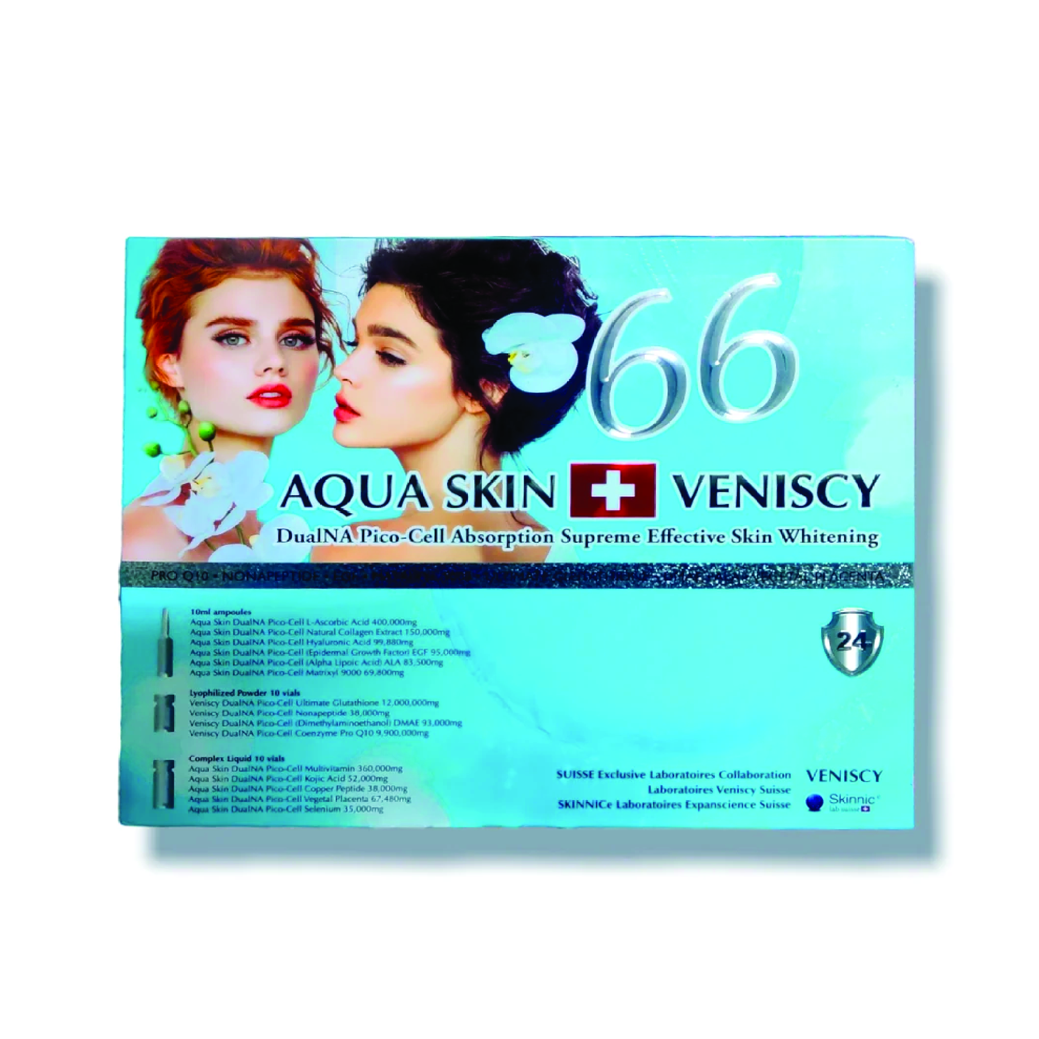 Conclusion: The Aqua Skin Veniscy 66 DualNA Pico Cell Absorption Supreme Effective Skin Whitening Injection [10 Sessions] is a premium whitening and rejuvenation solution designed for those who desire intensive whitening, anti-aging, and complete skin revitalization. With DualNA technology, Pico Cell Absorption, and high-strength Glutathione, it delivers radiant, youthful, and flawlessly even-toned skin from the inside out. Transform your complexion with Aqua Skin Veniscy 66 DualNA Pico Cell Absorption Supreme Effective Skin Whitening Injection — the ultimate choice for luminous, youthful, and revitalized skin.