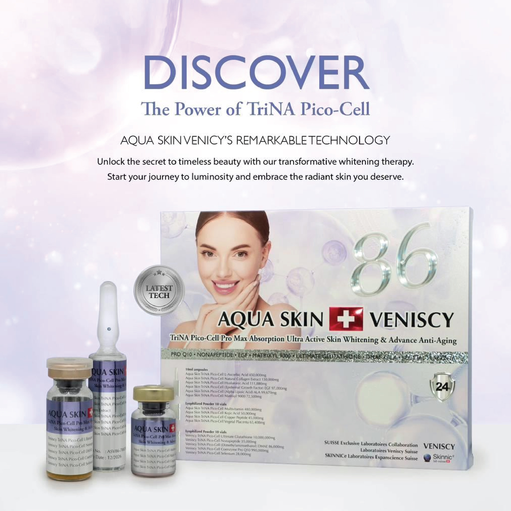 • Preparation: The Aqua Skin Veniscy 86 TriNA Pico Cell Ultra Absorption Supreme Skin Whitening and Anti - Aging is typically administered by a qualified medical professional or licensed healthcare provider.