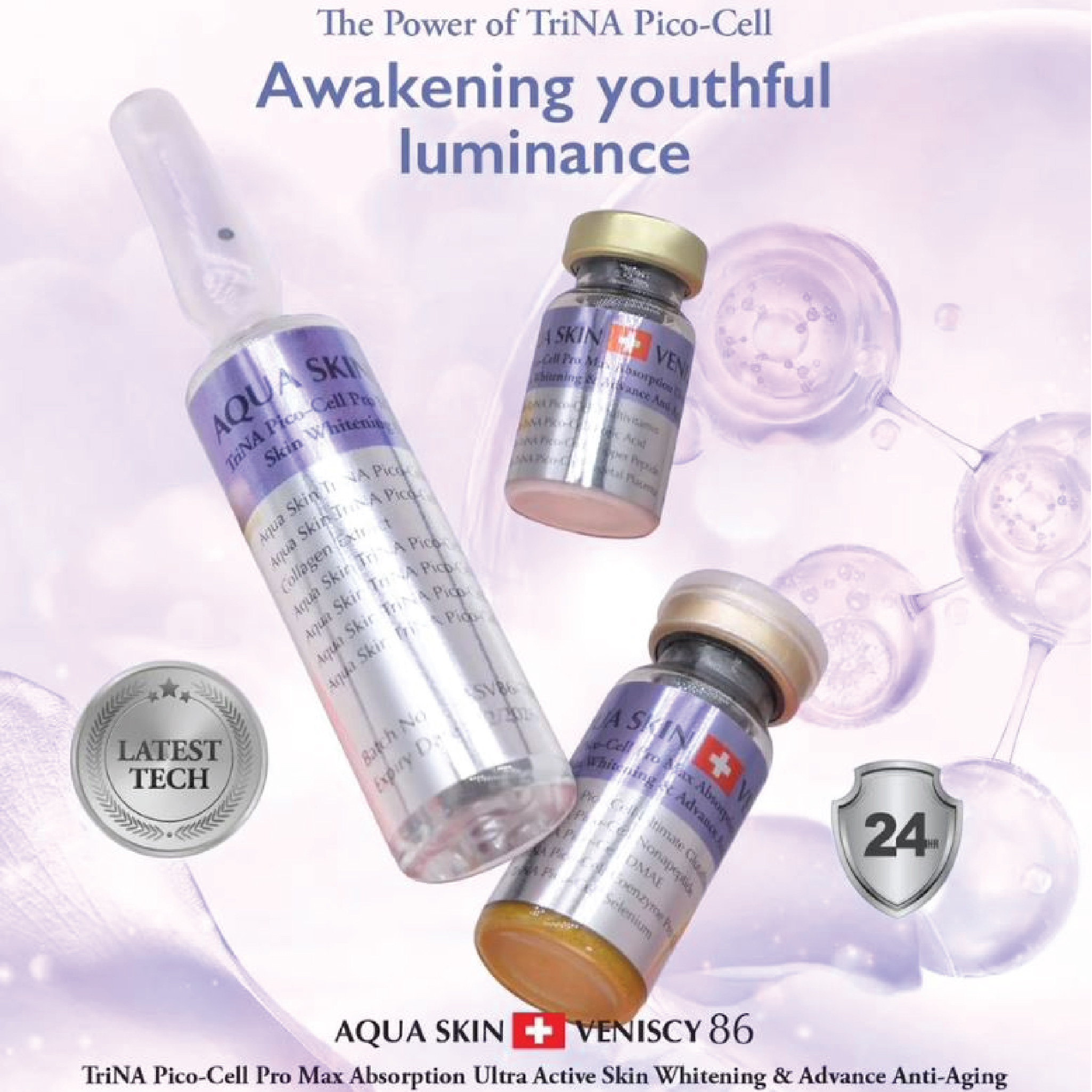 Aqua Skin Veniscy 86 TriNA Pico Cell Ultra Absorption Supreme Skin Whitening and Anti - Aging- Purple Box [10 Sessions]
