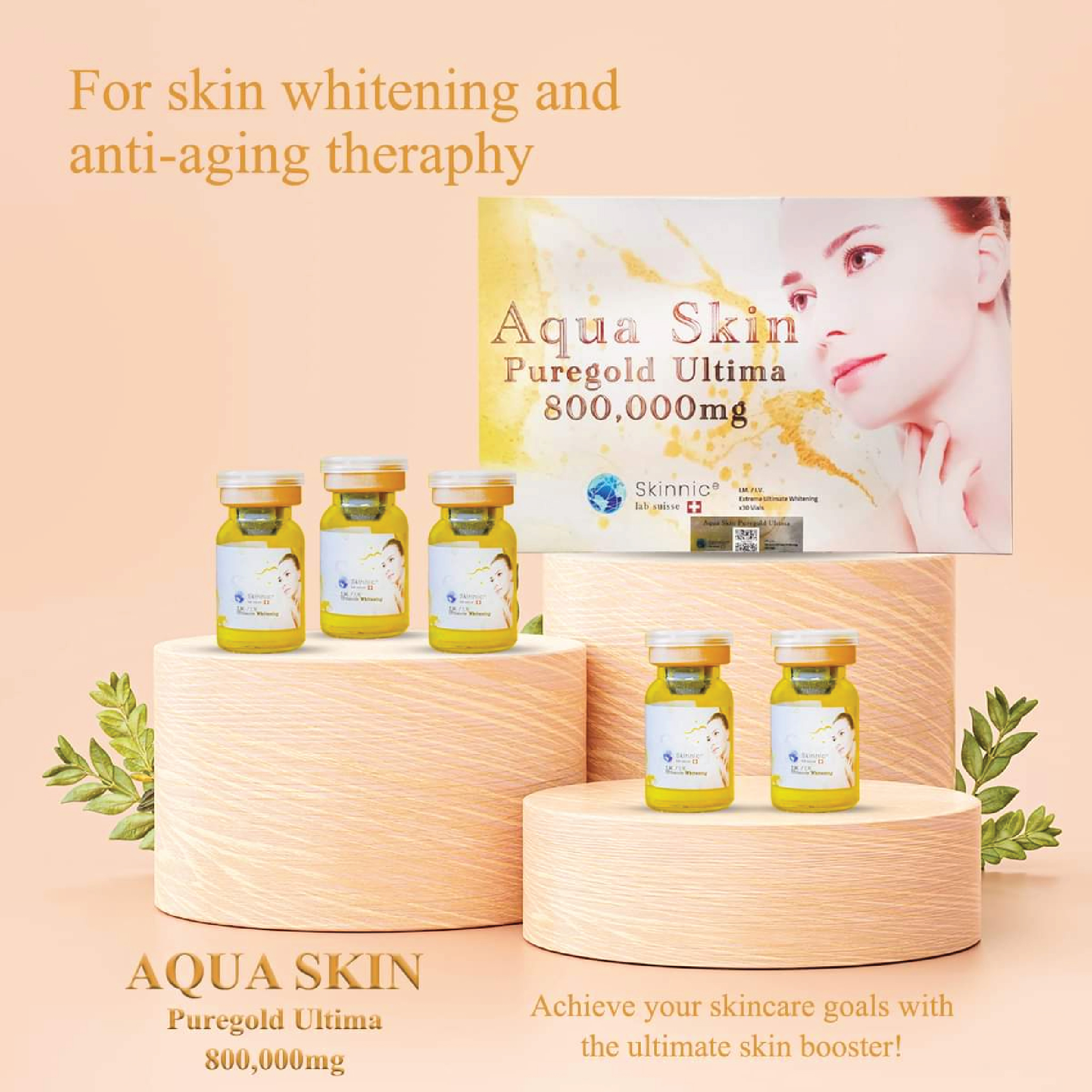 • Preparation: The Aqua Skin Pure Gold Ultima 800000mg Glutathione Injection is typically administered by a qualified medical professional or licensed healthcare provider.