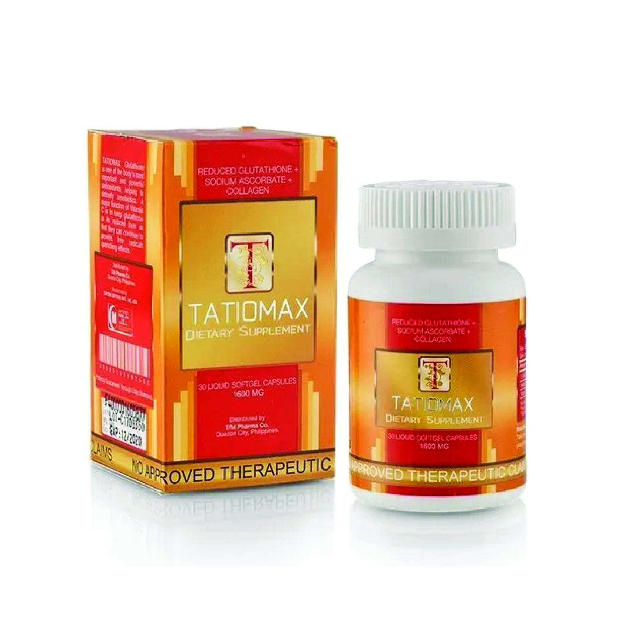 • Treatment: The TATIOMAX Reduced Glutathione + Sodium Ascorbate + Collagen 1600mg Softgel should be used in a series of 30 Capsules for optimal results. Take 1 Capsule Twice Daily, one in the morning and one at night before meals apart to allow your body to absorb the full benefits.
