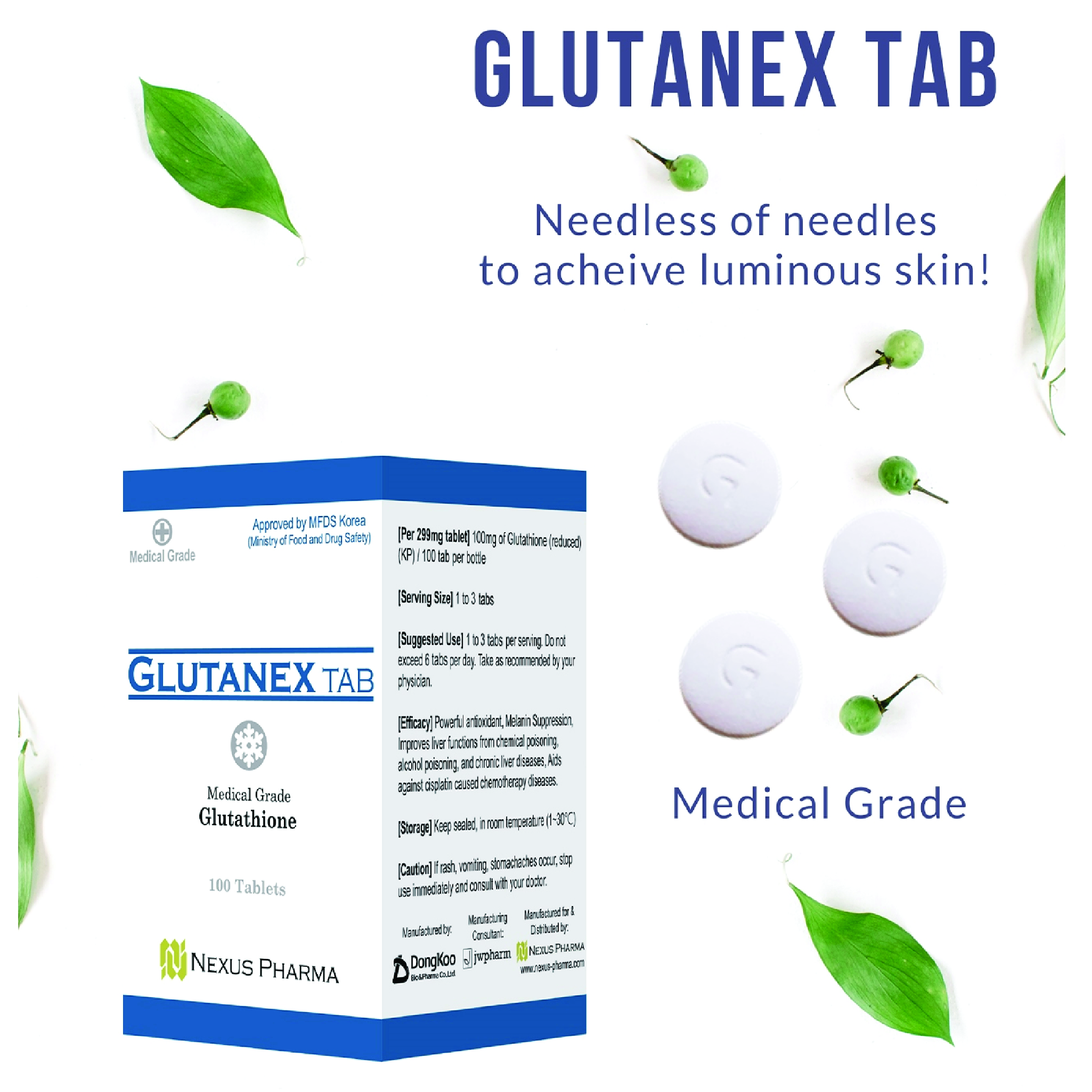 • Consultation: Always consult a dermatologist or medical professional before starting treatment to ensure Nexus Pharma Glutanex Glutathione 100mg Skin Whitening Tablet is suitable for your skin type and health condition, espicially for those with sensitive skin.